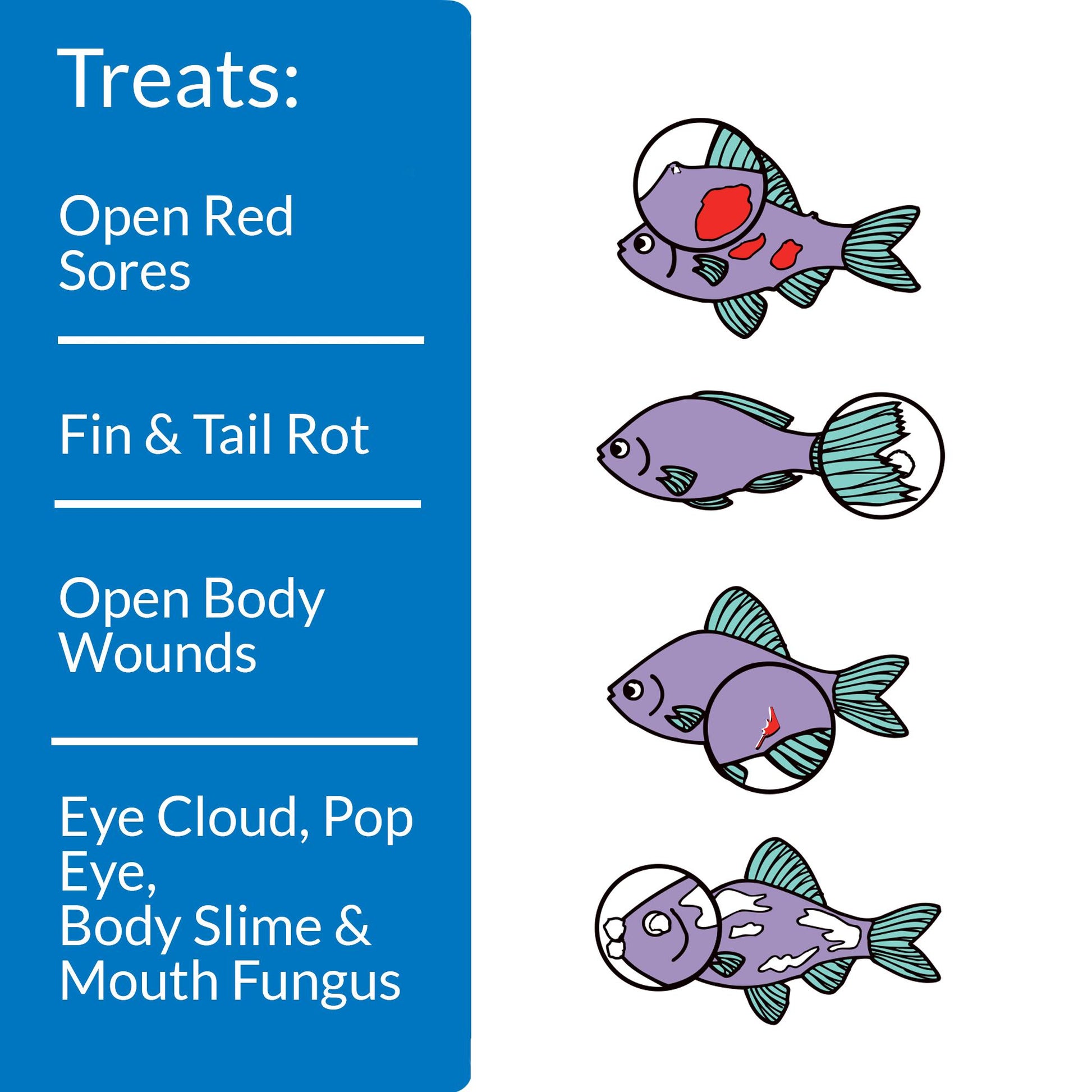 API® Melafix is an all-natural antibacterial treatment that works to treat infections in fish. Common bacterial infections are open wounds and abrasions, tail rot, eye cloud, and mouth fungus. API Melafix also promotes regrowth of damaged fins and tissue. Product may be used when adding fish to an aquarium – particularly to smooth the transition from store to home – and if an infection is suspected, but not yet diagnosed. Some fish bought in pet stores are already carrying diseases at the time of purchase, which may be difficult to detect in its early stages.