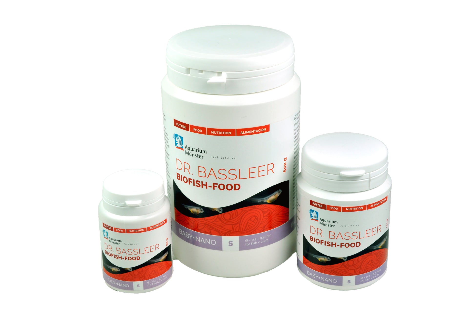 DR. BASSLEER BIOFISH FOOD BABY+NANO is a fine granulated food (approx. 200 µm) for fish larvae, juvenile fish, nano-aquarium fish (e. g. small Rasbora species) and shrimps. It remains stable for a long time and overcomes water pollution.