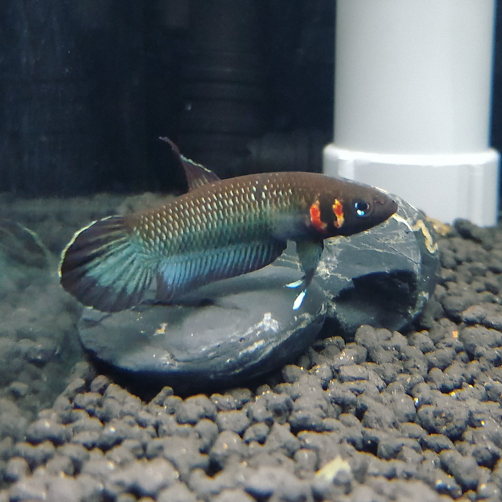 Maintenance-friendly without sacrificing realism, Betta foerschi can live in a fully-decorated aquarium. Many breeders opt for a substrate-free layout to ease maintenance, while others enjoy the visual texture of a carefully arranged driftwood-and-rootscape. Essential decor elements include: