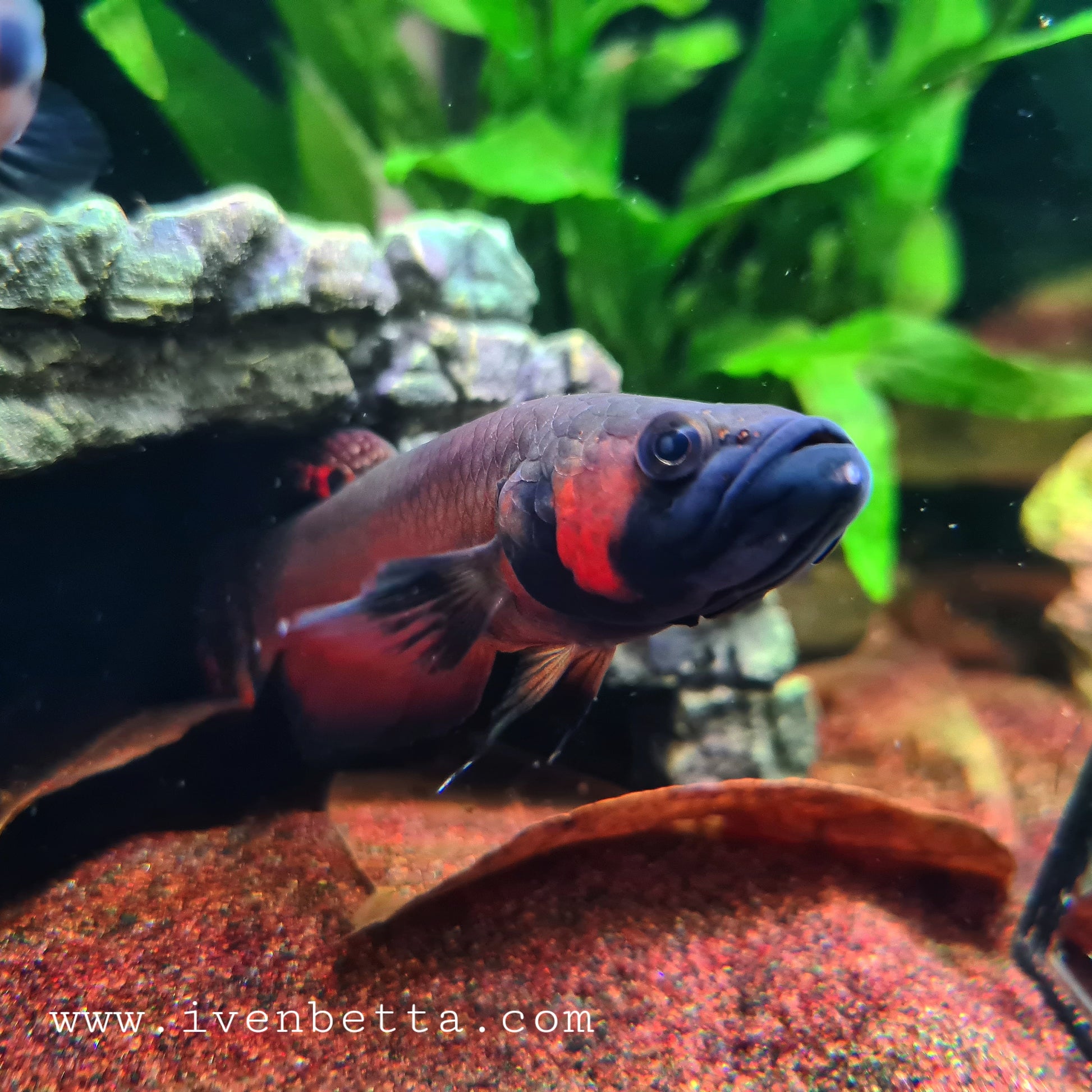 In the wild, Betta Macrostoma favors still, shady pools at the tops of rainforest waterfalls. The substrate tends to be gravel and rocks with leaf litter, while water can be clear but slightly brown from dissolved humic substances. Expect very soft, low-mineral water with pH typically ranging from 4.4 to 5.7, and negligible dissolved minerals. In the same streams you may find Rasbora tubbi and a red-coloured Machrobrahium sp shrimp, which likely form part of the natural diet and ecological balance.