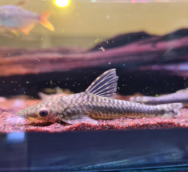 Giant Otocinclus. (Hypoptopoma Gulare) The Giant Otocinclus Catfish is NOT the same as the common Otocinclus (note the latin name). This fish grows to about 4.25″ in aquaria, whereas the common Oto might max out at 2″ or so.