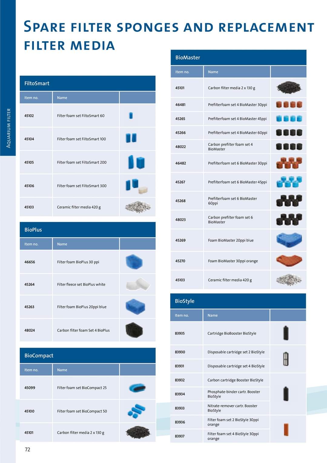 Carbon pre-filter foams – Activated carbon absorbs unwanted substances in aquarium water. Carbon filter foams make replacement much simpler than using common granular carbon.