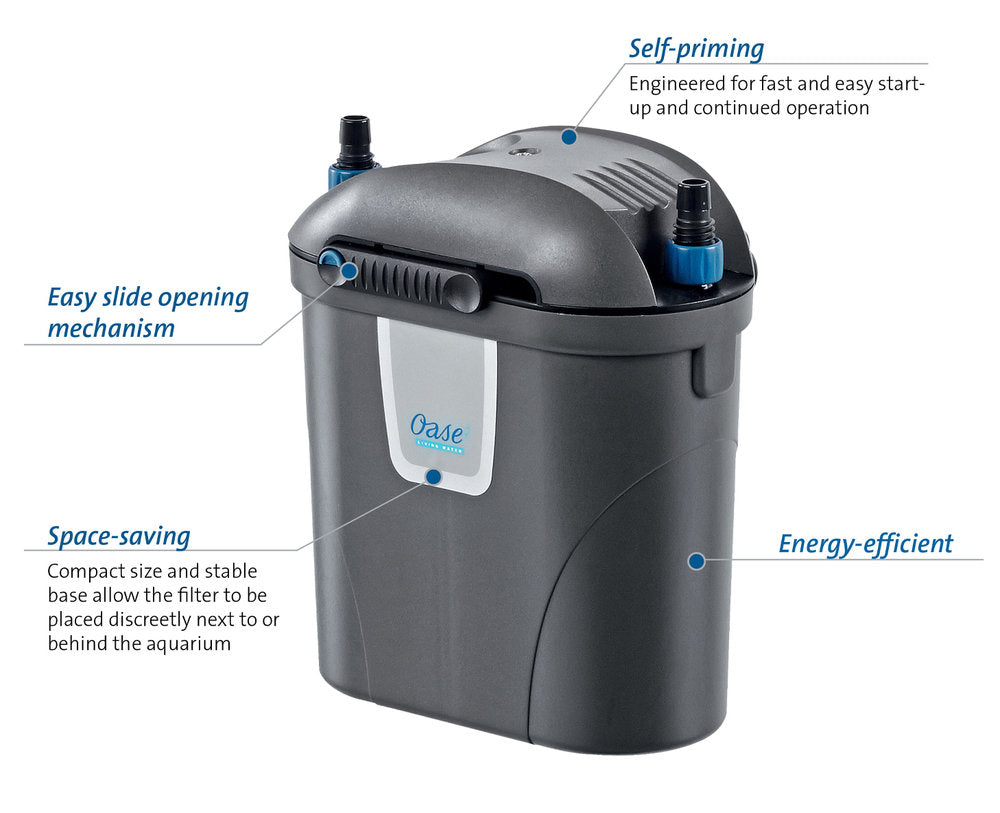 Complete set for a quick start: Including filter media, hoses, adapter, intake and outflow tube, as well as a water diffuser
